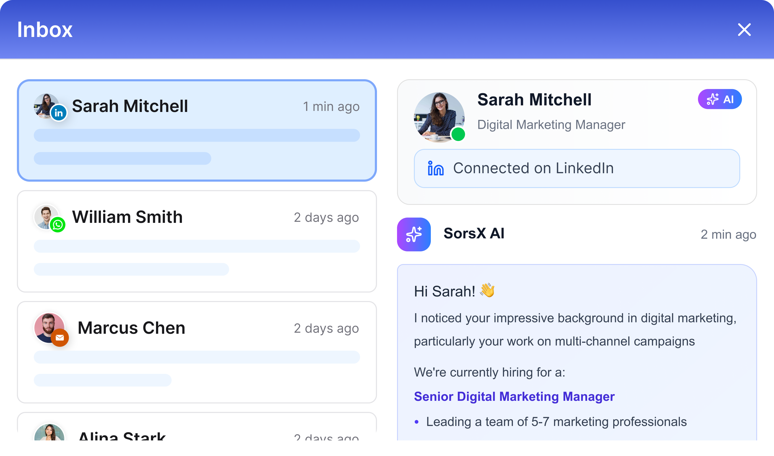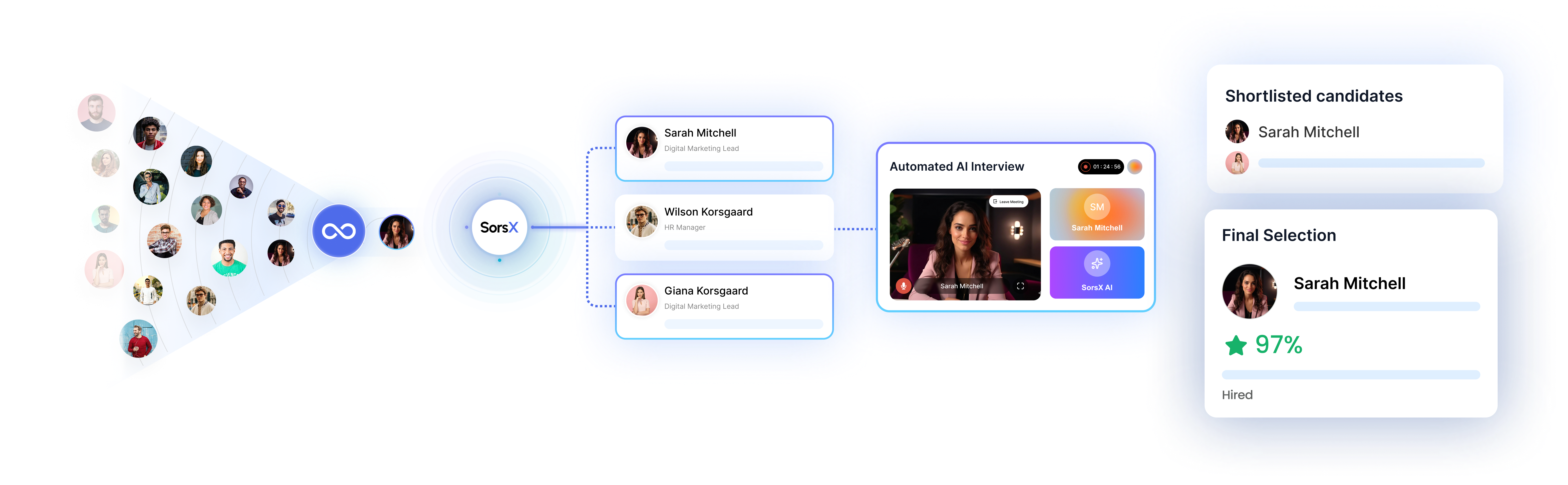 SorsX doesn’t just find names; it helps qualify candidates through structured screening and AI interviews. Hiring managers spend time only on real contenders, not “maybes.” The result is faster pipelines and fewer wasted interviews.