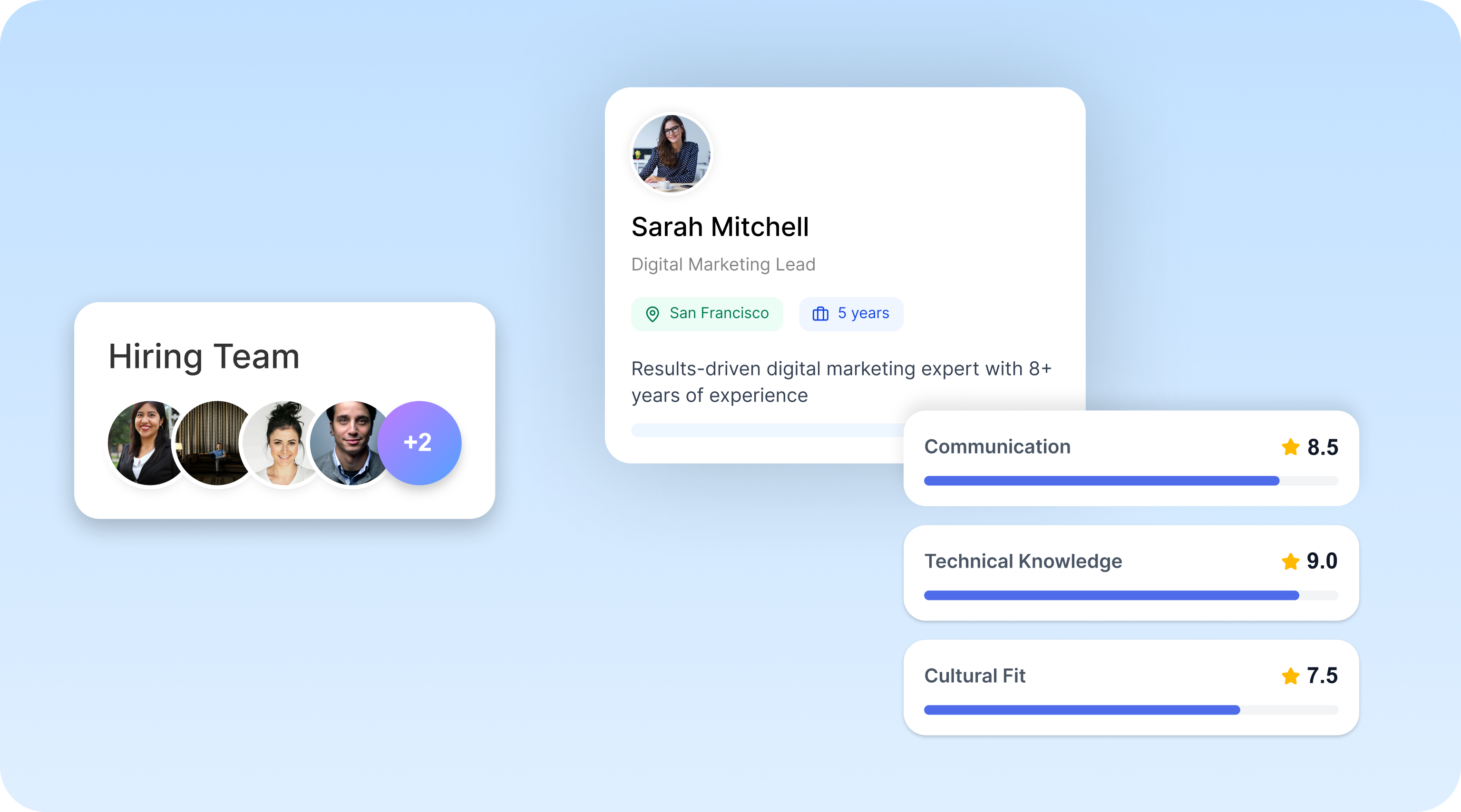 Compare candidates by structured interview performance and role fit without extra meetings.